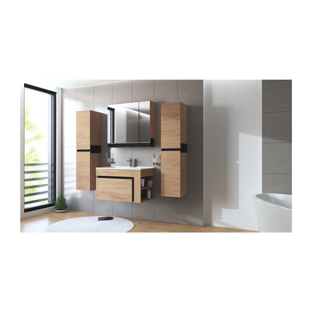A Stokes tükrös fali szekrény praktikus és stílusos megoldás fürdőszobájába vagy előszobájába. Kiváló minőségű fa anyagból készült, amely tartósságot és stabilitást biztosít. A beépített tükörrel ellátott ajtók egyszerre növelik a helyiség fényét és kényelmes ellenőrzési lehetőséget biztosítanak. A 80 cm-es hosszúság és 15 cm-es mélység optimális tárolókapacitást kínál anélkül, hogy túl sok helyet foglalna el.