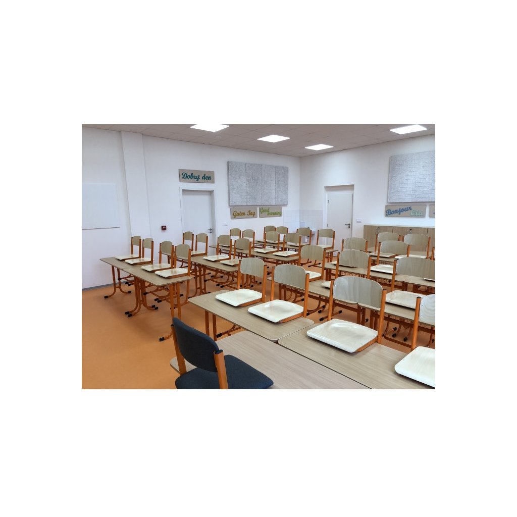 A Tanári szék 1 fiókkal ideális választás minden oktatási intézmény számára, amely rendezett és funkcionális munkaterületet kíván biztosítani. A nagyobb méretű asztallap 130 cm hosszú és 65 cm mély, így elegendő helyet kínál a tanítási anyagok elhelyezésére és a mindennapi használatra.