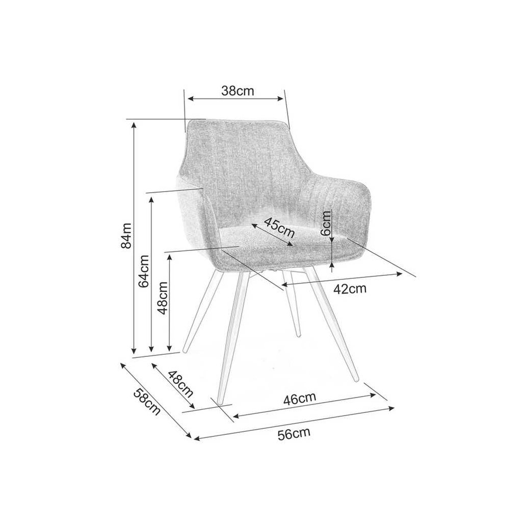 A Tansy étkezőszék kényelmes és tartós választás minden étkezőbe. Masszív fém alapja biztosítja a stabilitást, míg a puha szövet ülőfelület kellemes érintést nyújt, így hosszabb étkezések alatt is kényelmes marad. A háttámla és az oldalán kialakított karfák extra támogatást biztosítanak, ami növeli a használati élményt.