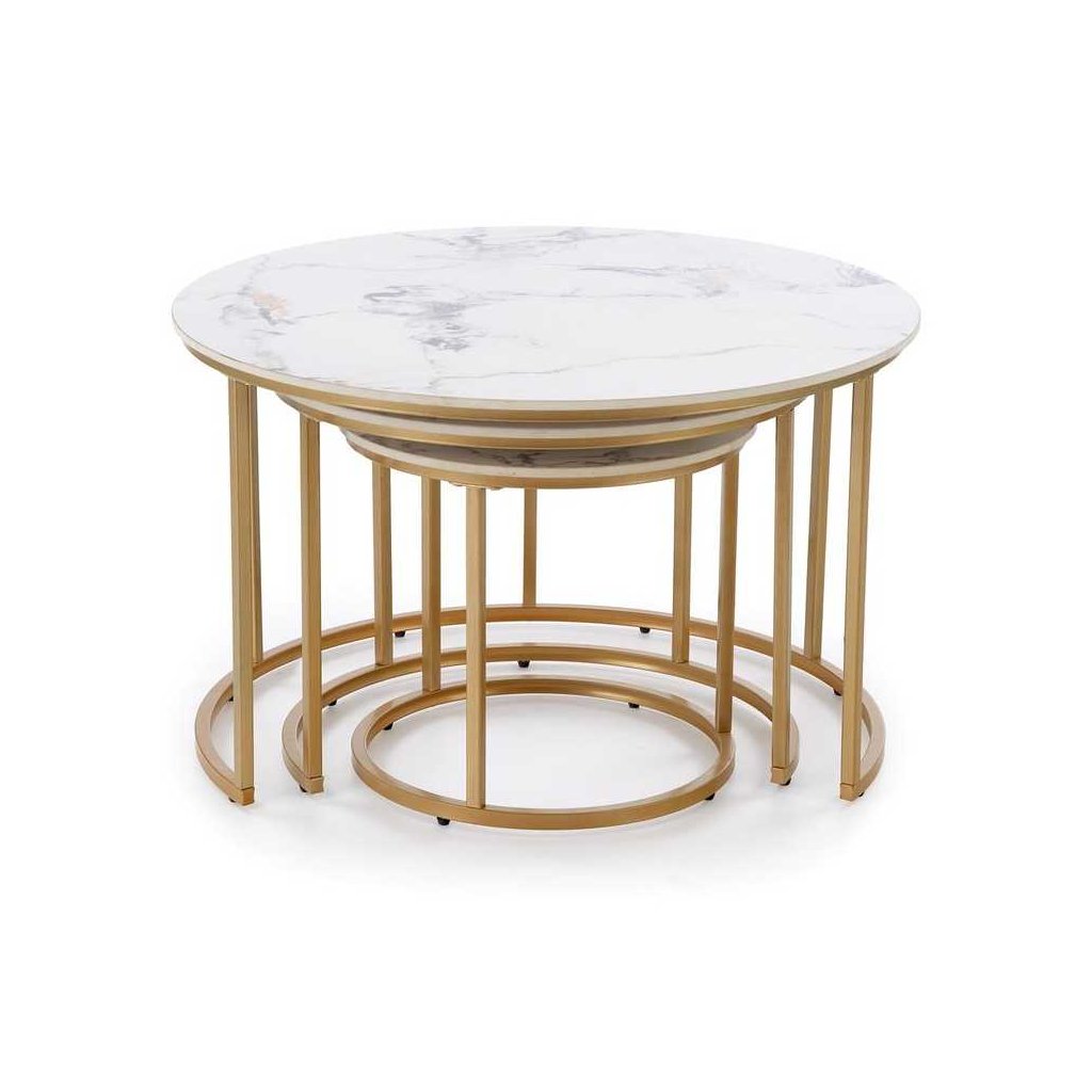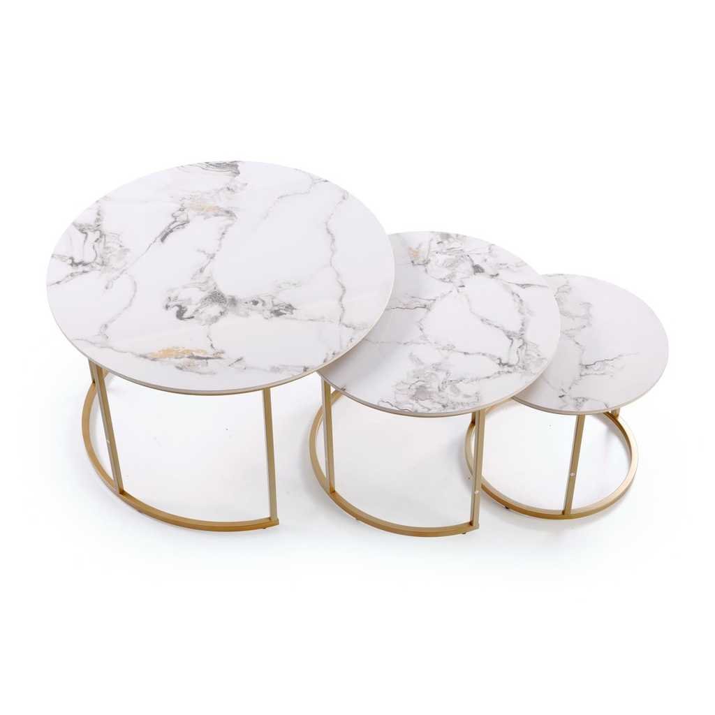 A Tercera dohányzóasztal egy elegáns és modern bútor, amely tökéletes választás nappalijába. A kőből készült asztallap tartós és könnyen tisztán tartható, míg a fém alap stabil és masszív tartást biztosít az asztalnak. Kör alakjának köszönhetően praktikus és esztétikus megjelenést kölcsönöz bármely térnek.