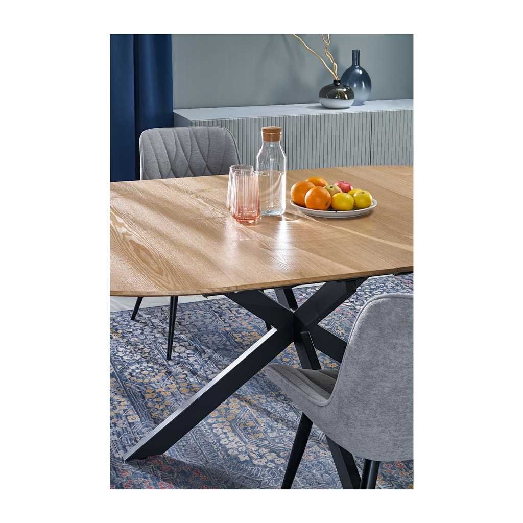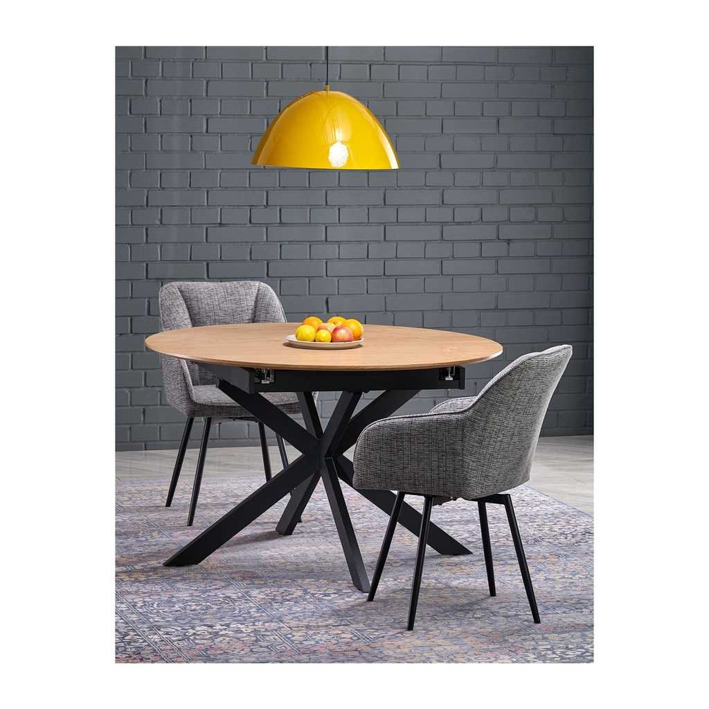 A Triad étkezőasztal kiváló választás minden modern otthonba, amely ötvözi a természetes fa melegségét a fém masszív stabilitásával. Ez az ovális formájú asztal nemcsak esztétikailag vonzó, hanem rendkívül praktikus is a bővíthetőségének köszönhetően, így akár hat személy számára is elegendő helyet biztosít.