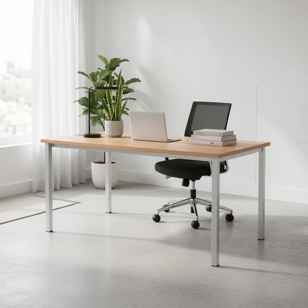 Ez az univerzális asztal ideális választás otthonába, irodájába vagy akár közösségi térbe, ahol praktikus és tartós bútorra van szükség. Az erős fém lábak stabilitást biztosítanak, miközben az asztallap kiváló minőségű, strapabíró fa anyagból készült, amely hosszú éveken át megőrzi szép megjelenését.