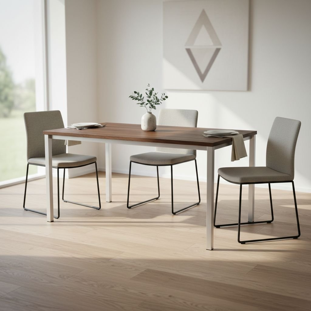 Ez az univerzális asztal ideális választás otthonába, irodájába vagy akár közösségi térbe, ahol praktikus és tartós bútorra van szükség. Az erős fém lábak stabilitást biztosítanak, miközben az asztallap kiváló minőségű, strapabíró fa anyagból készült, amely hosszú éveken át megőrzi szép megjelenését.