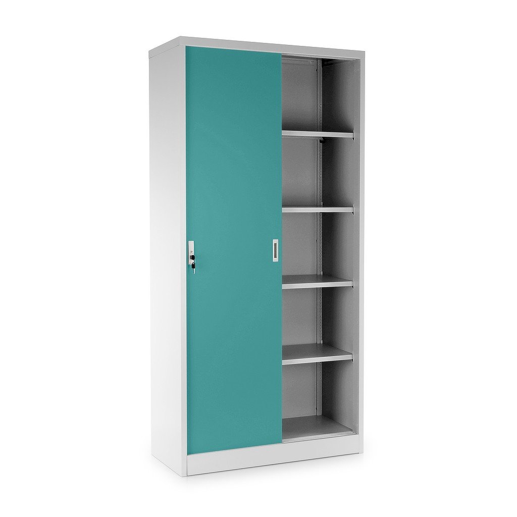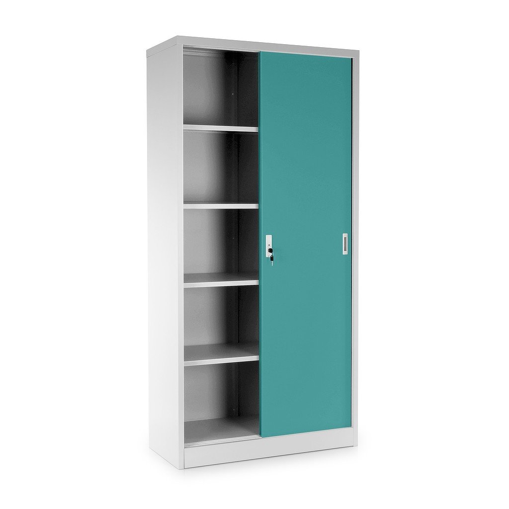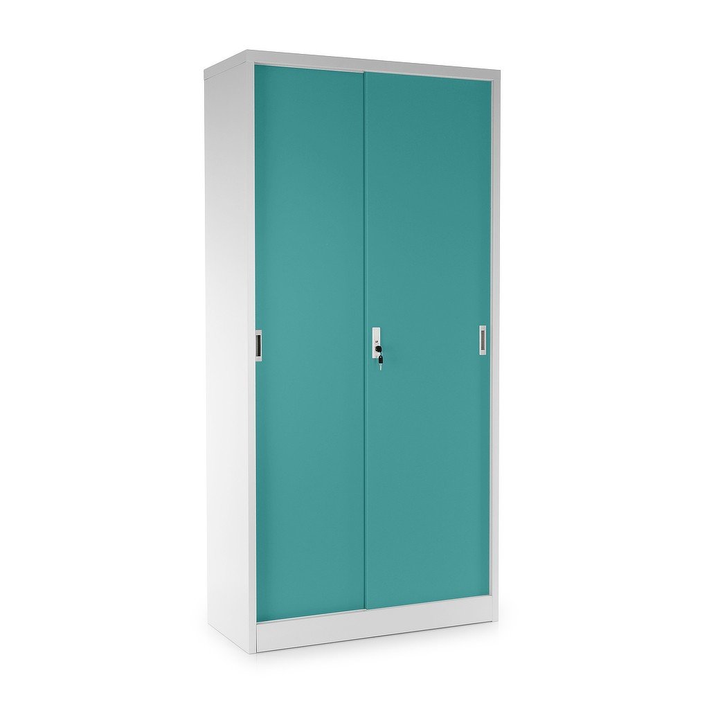 Univerzális fém szekrény tolóajtókkal 90 x 40 x 185 cm, hengerzár, zöld - ral 6033