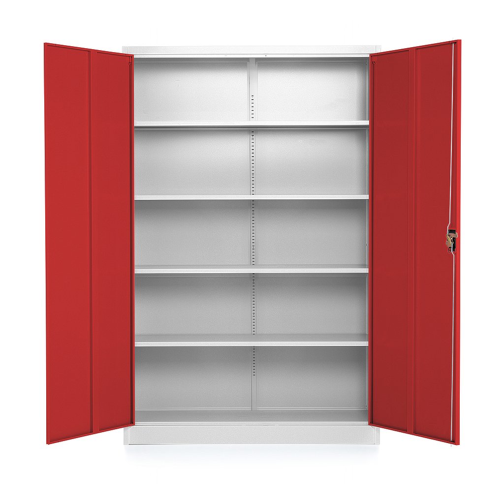 Univerzális fémszekrény 120 x 40 x 185 cm, hengerzár, piros - ral 3000