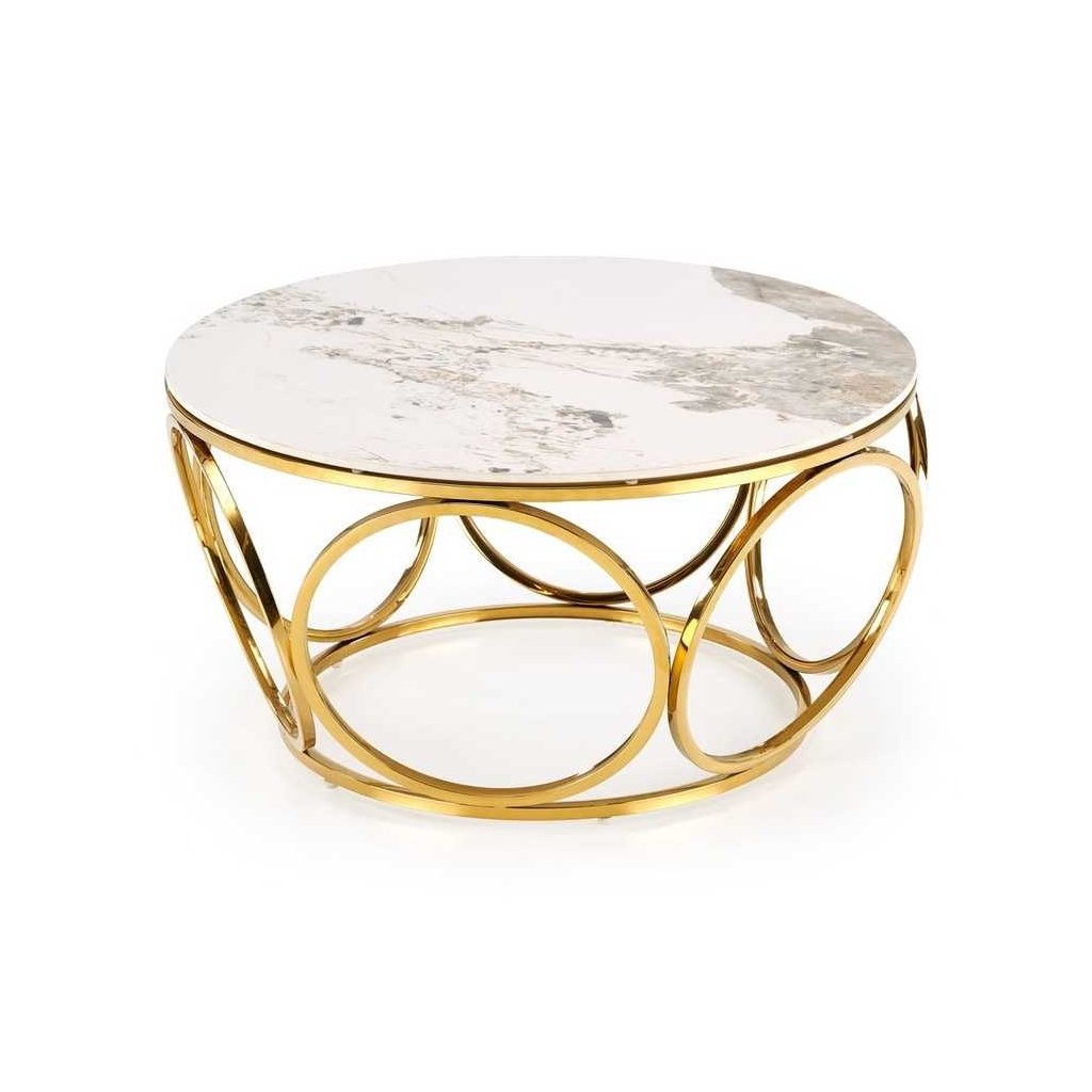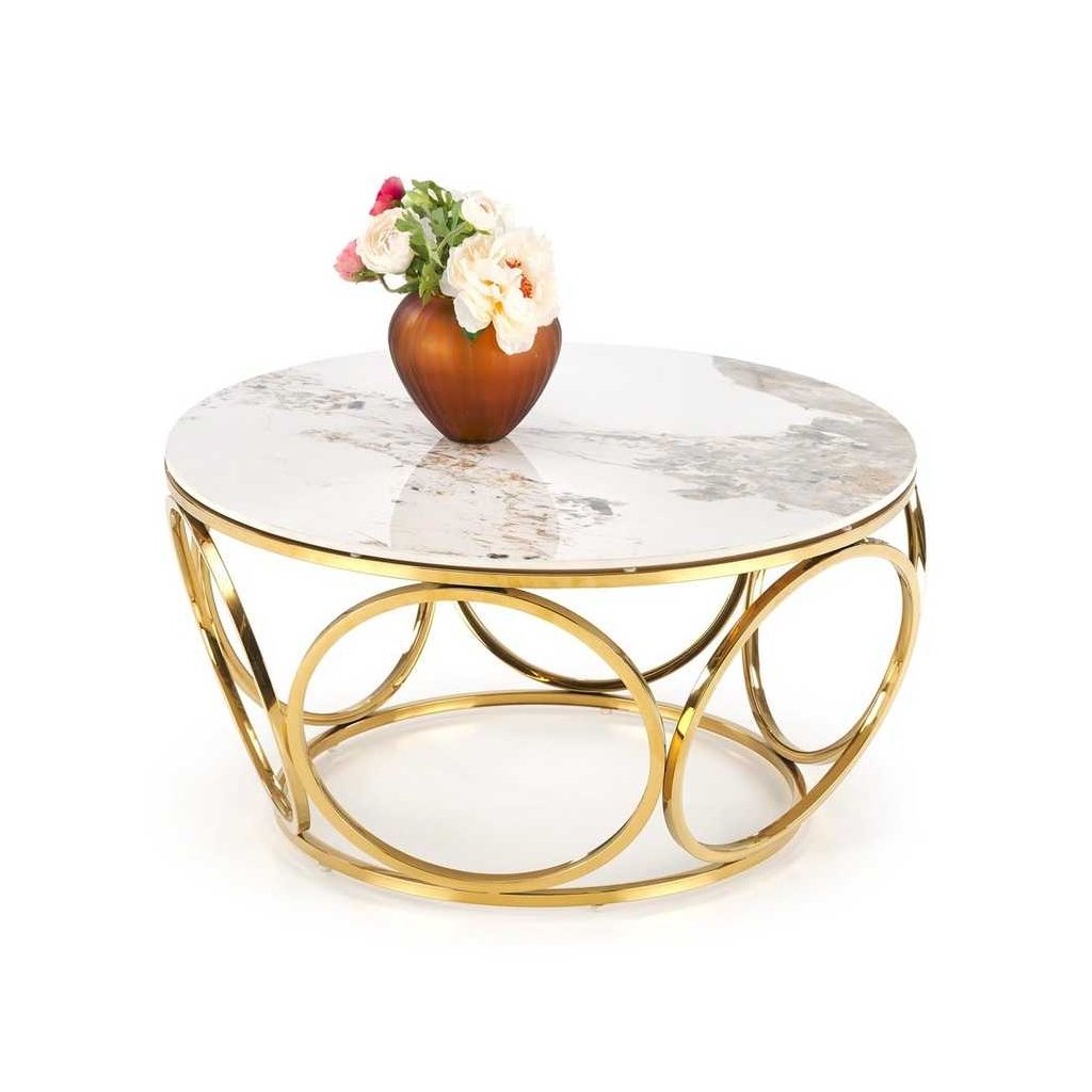 A Venus II dohányzóasztal elegáns és modern dizájnjával tökéletes kiegészítője lehet nappalijának. Kör alakú asztallapja kőből készült, amely tartósságot és stabilitást biztosít. Az asztal masszív fém alapja nemcsak esztétikus, hanem hosszú élettartamot is garantál.