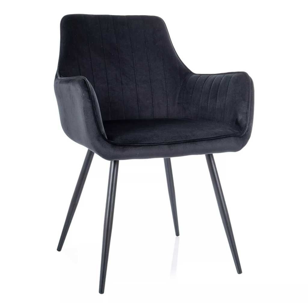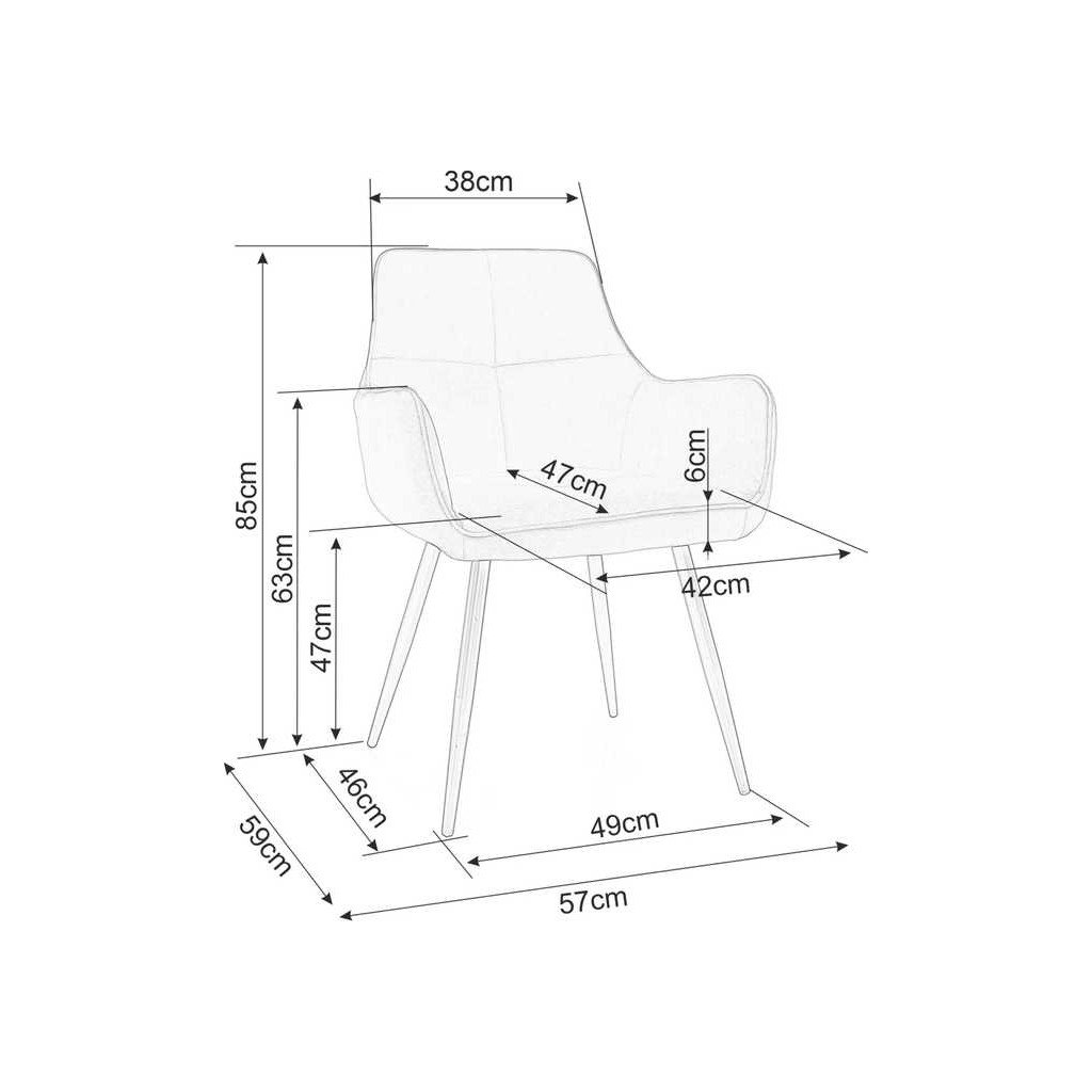 A Viona Velvet étkezőszék elegáns és kényelmes választás minden étkezőbe. Párnázott bársonyszövet borítása kellemes tapintást és tartós használatot biztosít, miközben az erős fém váznak köszönhetően stabil és masszív. A karfás kialakítás extra kényelmet nyújt, hogy hosszan élvezhesse az étkezések vagy beszélgetések pillanatait.