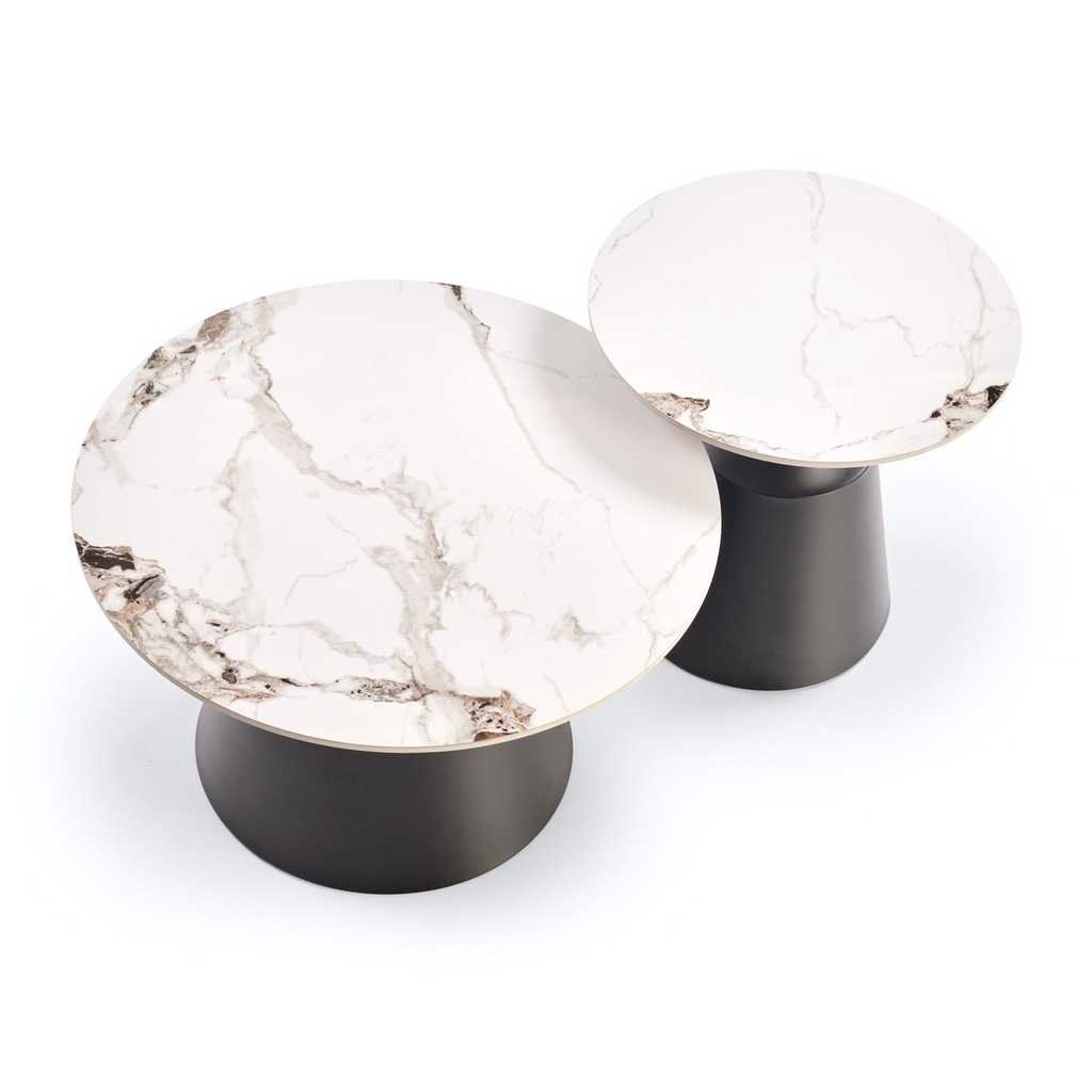 A Xyla dohányzóasztal elegáns és tartós kiegészítője lehet nappalijának vagy bármelyik pihenőhelyiségének. A kör alakú asztallap kőből készült, amely nemcsak stílusos megjelenést nyújt, hanem könnyen tisztítható és időtálló is. Az asztal stabil fém alapja biztosítja a masszív tartást és a hosszú élettartamot.